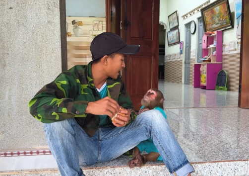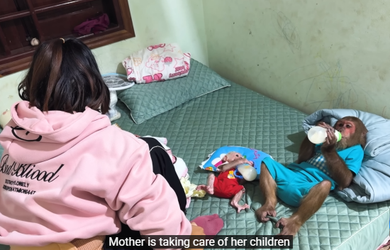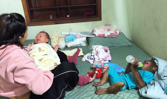 CUTIS carefully adjusted a blanket around Dad, making sure he was warm and comfortable. The baby monkey followed closely, tugging at the edge of the blanket with tiny hands, trying to help.