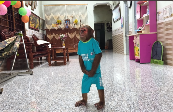 CUTIS gently moved around the room, keeping noise to a minimum. The baby monkey copied the behavior… for about three seconds.