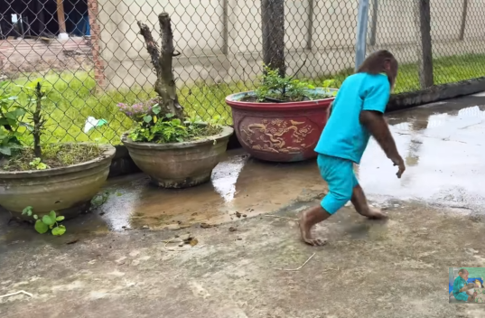 They worked together quietly, preparing something simple but meaningful. The baby monkey helped by carrying small items, carefully placing them down like a tiny assistant on an important mission.