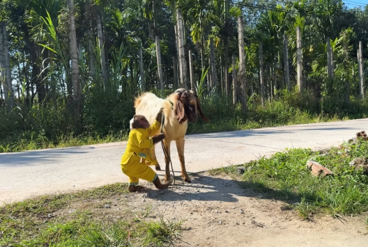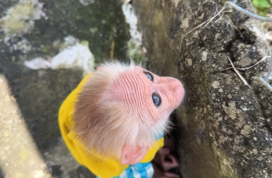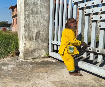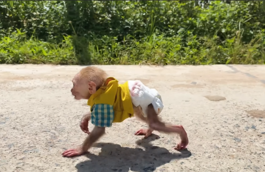 “Come on!” he said, grabbing the baby monkey’s hand and pulling it away.