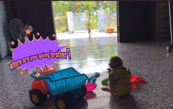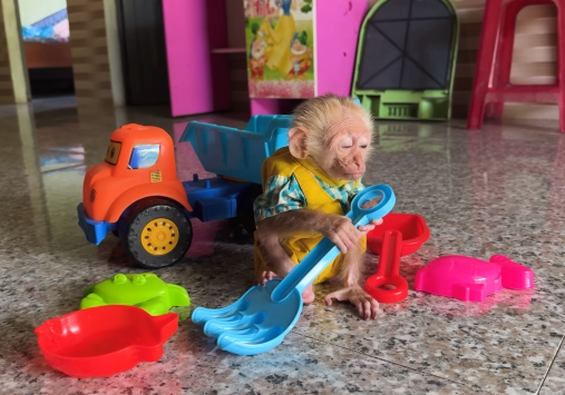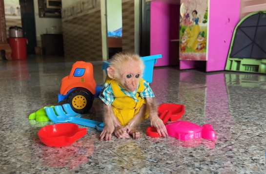 Not far away, the baby monkey had just woken up—and as usual, trouble wasn’t far behind.