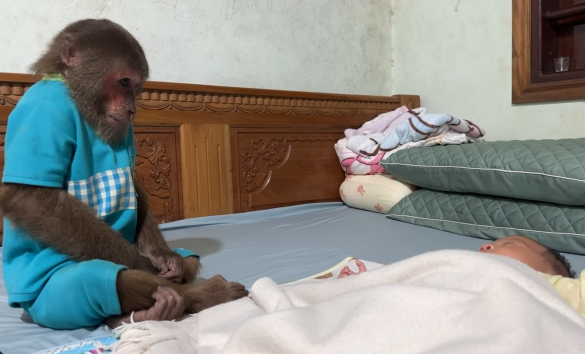 He looked down at the sleeping baby monkey, its tiny chest rising and falling peacefully.