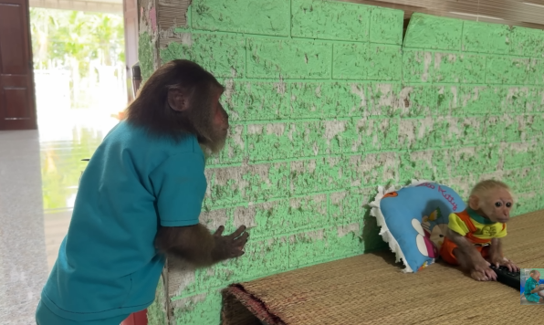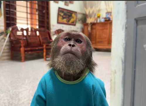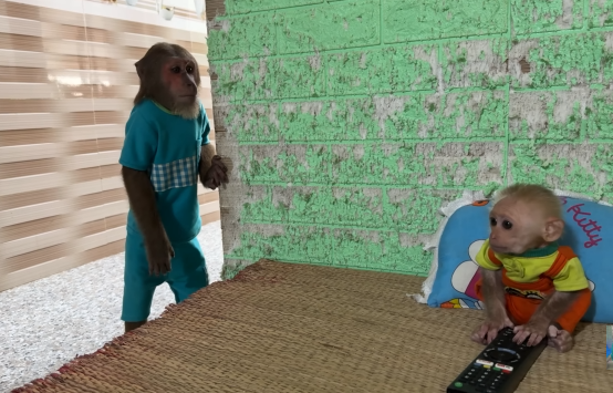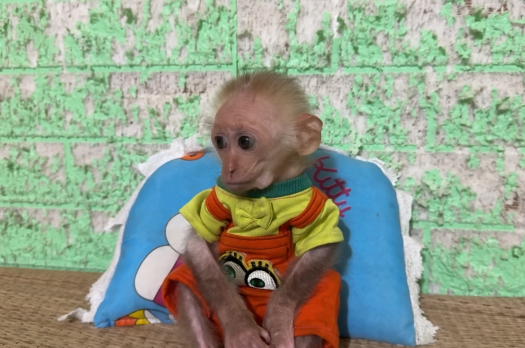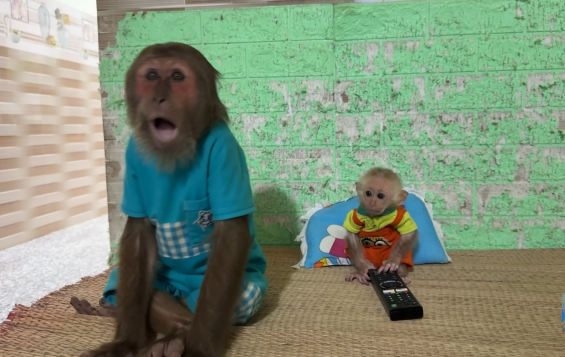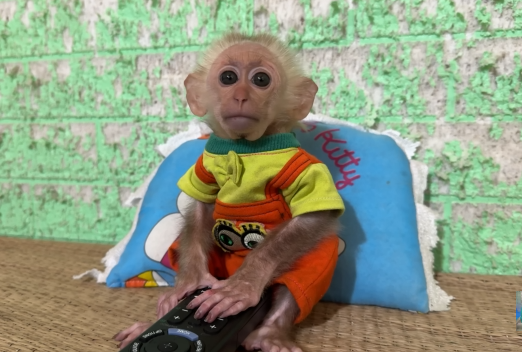 The baby monkey, sitting nearby, perked up instantly. “Me?!” its tiny voice squeaked with excitement.