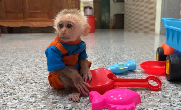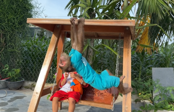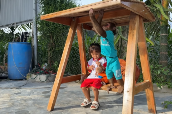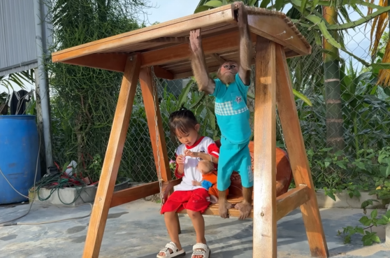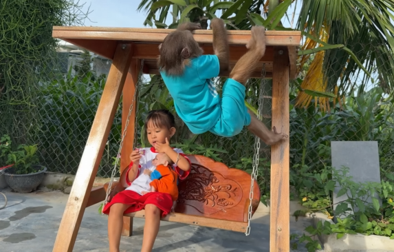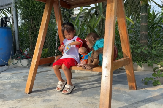 Yen Nhi couldn’t help but laugh. She knelt down, gently petting the baby monkey, who immediately climbed onto her shoulder. CUTIS hopped down gracefully and stood beside her, looking unusually serious.