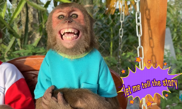CUTIS, the clever and slightly mischievous monkey, sat perched on a low branch near the school gate. Beside him clung the baby monkey, small and wide-eyed, gripping CUTIS’s fur tightly. The baby monkey chirped softly, clearly excited, though perhaps not entirely sure what was going on.