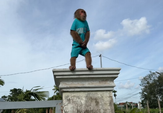 Walking calmly down the road was Yen Nhi… with CUTIS leading the way and a baby monkey clinging happily to her shoulder.