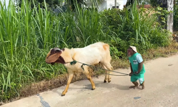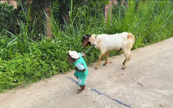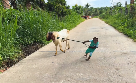 He quickly grabbed a piece of vine and wrapped it loosely around the coconut shell. Then he pulled it gently from a distance, making the shell move slightly on its own.