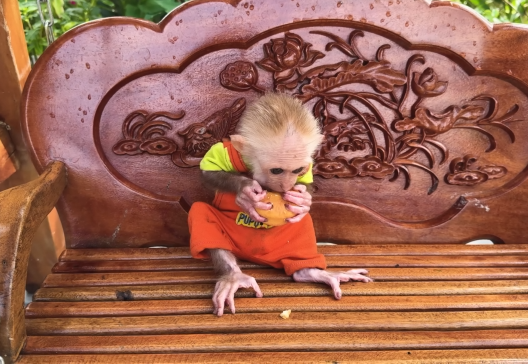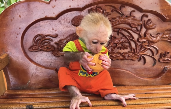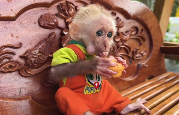 The baby monkey took a bite—and its eyes lit up instantly.