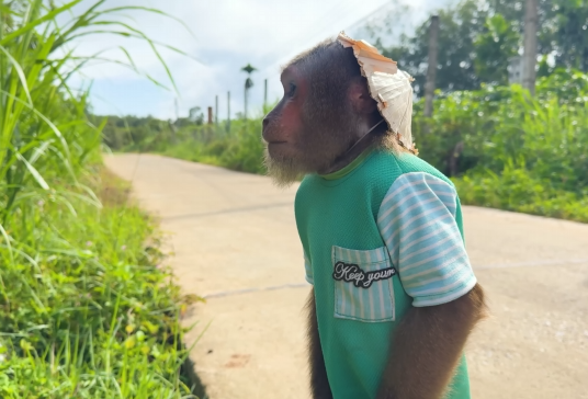 The baby monkey tilted its head, watching him think. Then suddenly, CUTIS’s face lit up with a mischievous grin.