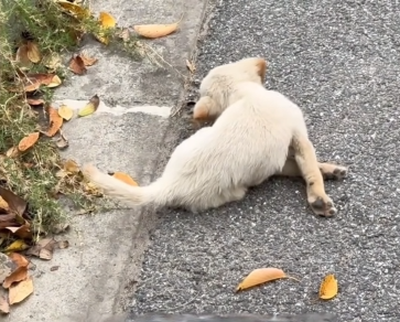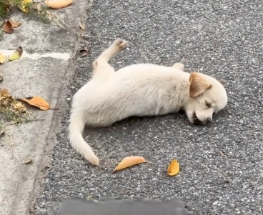 His small body lay on the rough pavement, barely noticeable among the dust and scattered debris. One of his legs was twisted unnaturally, and his breathing—if it was there at all—was too faint to hear over the distant hum of traffic.