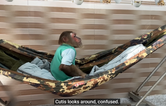 After eating, CUTIS lay on his back, his belly full and round.