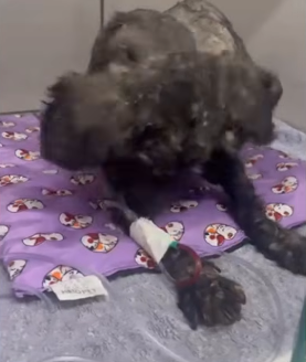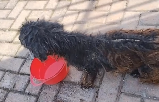 Curled up in the corner of a forgotten alley, he blended into the dirt and shadows as if he had become part of them. His fur, once meant to protect him, had turned into a heavy, tangled mess—matted so tightly that it pulled at his skin with every tiny movement.