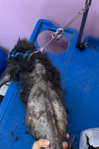 The matted fur had to be carefully shaved away, revealing skin that was irritated, raw, and in some places, wounded. Parasites had made a home in his neglected coat. His body was dehydrated, malnourished, and dangerously weak.