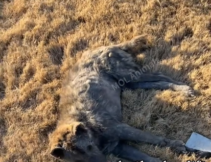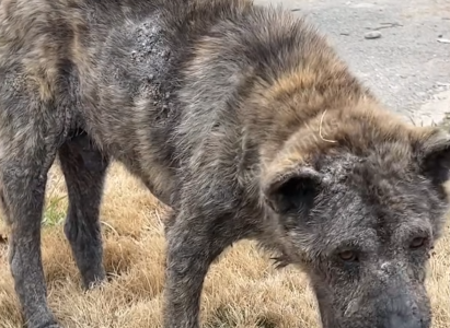 His body was thin beyond recognition, ribs pushing sharply against fragile skin that had once been strong and warm. His fur, patchy and matted, clung to him like a memory of better days. One of his legs dragged uselessly at an unnatural angle, and his breathing came in shallow, uneven waves. Each inhale seemed like a question. Each exhale, a quiet surrender.