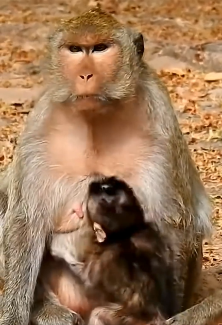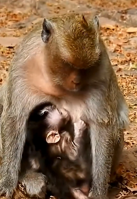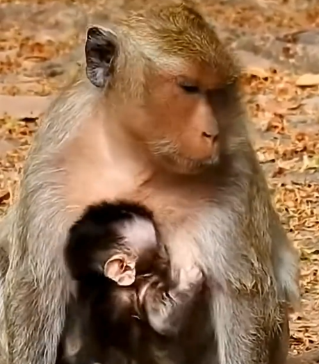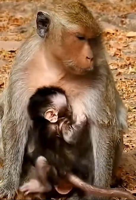 Her baby was small, still clinging to the earliest stages of life. It stayed close to her chest most of the time, gripping her fur with tiny hands that trusted her completely. For the baby, the world was simple: warmth, safety, and the presence of its mother. For the mother, however, everything was responsibility.