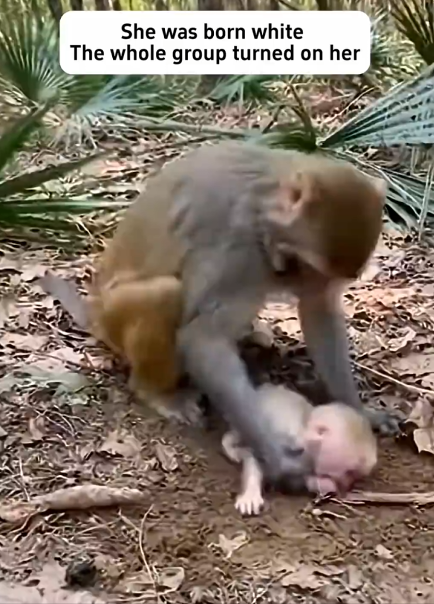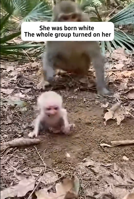 Her fur was noticeably lighter than the others in her group—almost pale against the deep brown and grey tones of her family. At first, she was just a fragile newborn, clinging tightly to her mother’s chest, unaware of anything beyond warmth and milk. In those earliest days, difference did not matter. She was simply new life, dependent and protected.