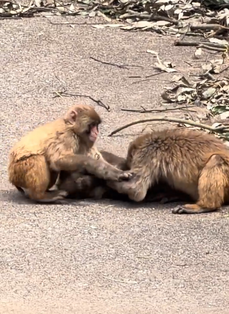 The buzz-cut guy finally pushed himself off the tree trunk and took a few slow steps forward. The monkeys nearby noticed immediately, their movements briefly pausing as they tracked him. He didn’t seem threatening. He didn’t seem particularly exciting either. But he had their attention.