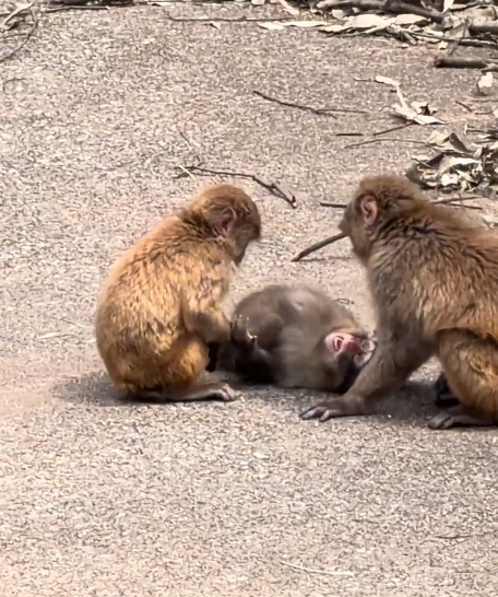 Then the monkey reached out slightly, touched his arm near the bite mark, and immediately pulled back.