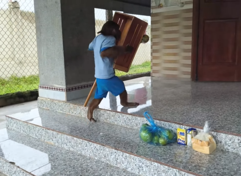The baby monkey tried to help.