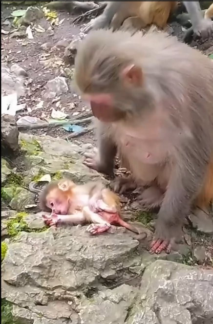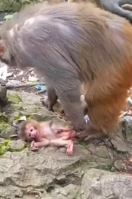 In the end, this moment captures both the raw reality of nature and the tender bonds that form in the animal kingdom. Even when methods seem rough, love, care, and protection shine through. Mom monkey’s impatience is a lesson in urgency and instinct, while the baby’s resilience reminds us that even the tiniest creatures can endure, adapt, and thrive with the right guidance.