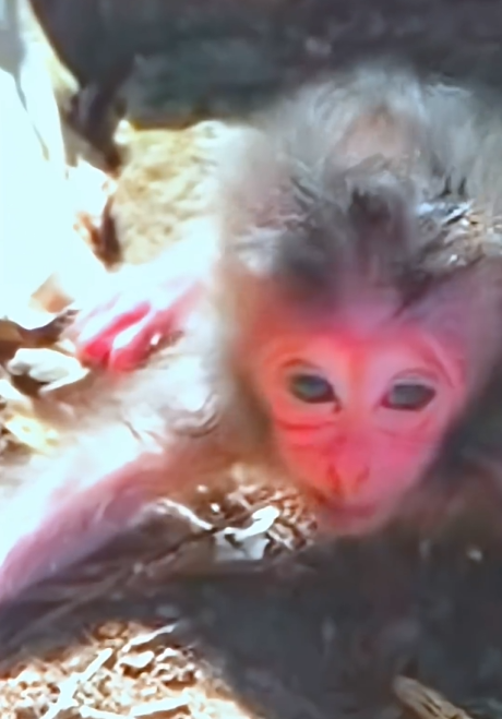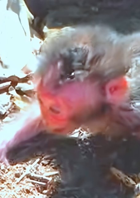 The mother monkey, having given birth just two days prior, was alert, watchful, and deeply attuned to the needs of her newborn. Her maternal instincts were in full force. She hovered near the tiny creature, occasionally nudging it gently, repositioning it, and grooming its fur. The newborn responded, albeit weakly, to each touch with small movements and tiny squeaks—a subtle acknowledgment that life was being supported.