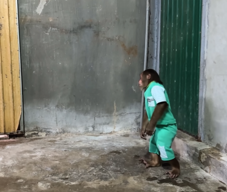 The moment became legendary in the sanctuary. Volunteers told the story over and over, laughing as they described the baby monkey bouncing and CUTIS shaking with laughter. It was a day filled with innocence, joy, and the kind of funny discovery that reminded everyone that even small creatures have enormous personalities and a way of brightening the world.