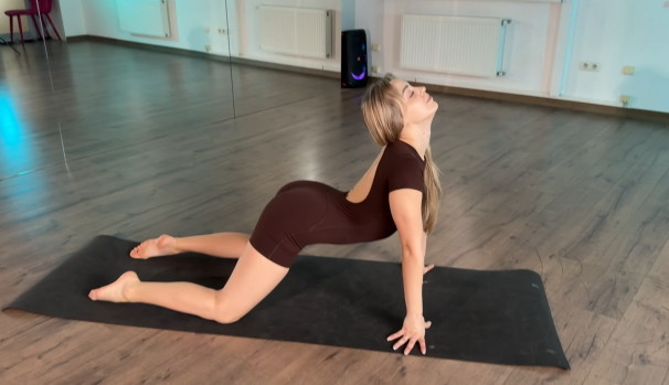 From here, add a gentle twist. Place your hands on your hips and slowly rotate your torso from side to side. Keep the movement controlled and relaxed.