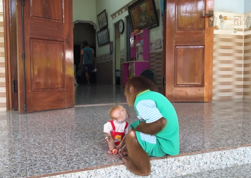 And the baby monkey did exactly that.
