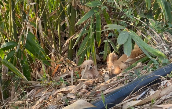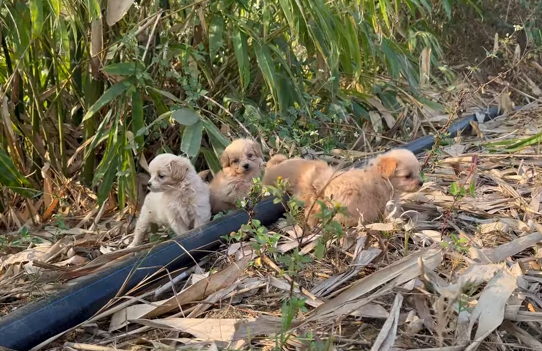 Beside him trotted a small white dog, her ears perked even in exhaustion. She tried to stay hopeful, often wagging her tail at strangers they passed, as if kindness might still exist somewhere in the world. Behind them followed a black dog, quiet and watchful, who rarely made a sound but never left the group. And finally, the youngest—a golden puppy whose energy had faded far too soon—struggled to keep up, his tiny paws dragging with every step.