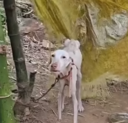 As I got closer, the truth became clearer. Her body was covered in dirt, her fur matted and uneven. She was painfully thin, her ribs visible with every shallow breath. But it wasn’t just her physical condition that broke my heart.