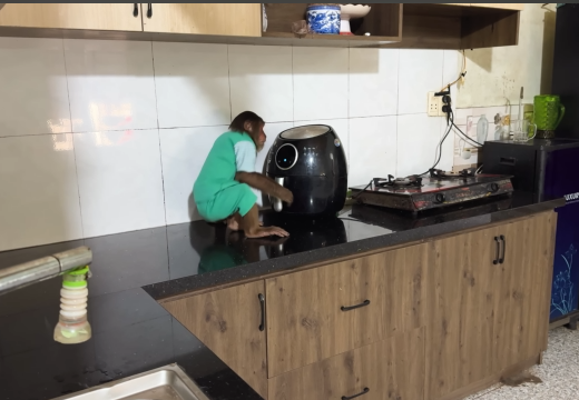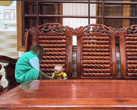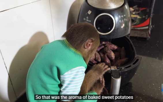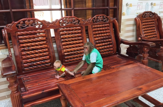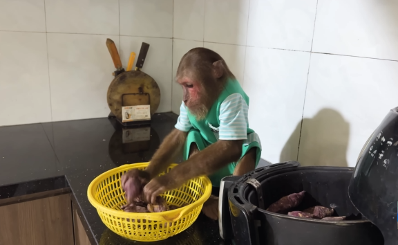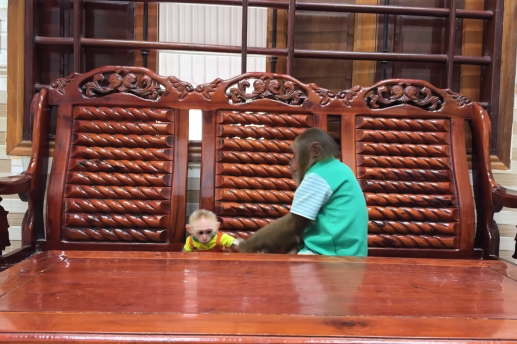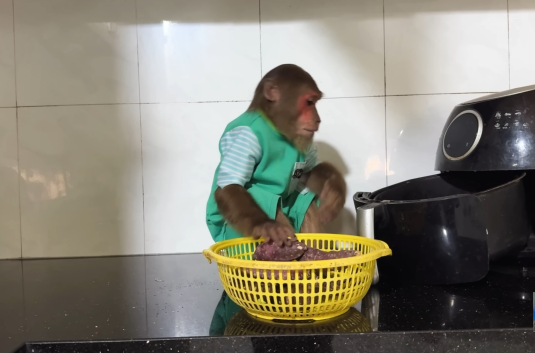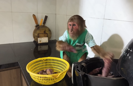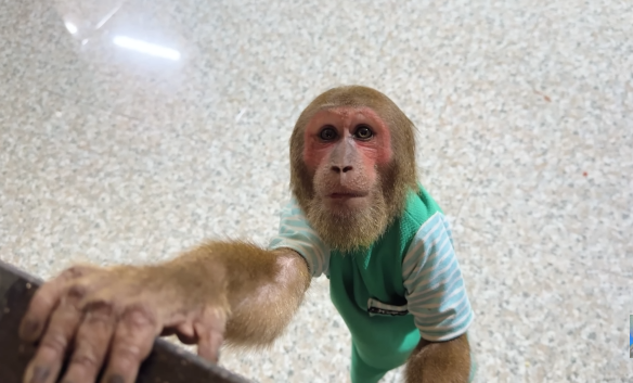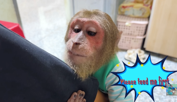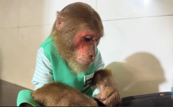 The baby monkey clapped its tiny hands, clearly happy with the day’s success.