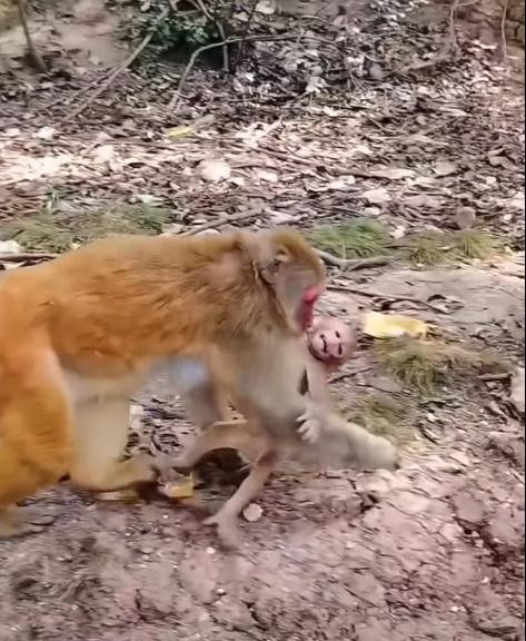 This baby monkey clings to her with the same trust that once filled her life before. Its tiny fingers wrap around her fur, its eyes searching her face, looking for safety, for comfort, for the certainty that only a mother can provide.