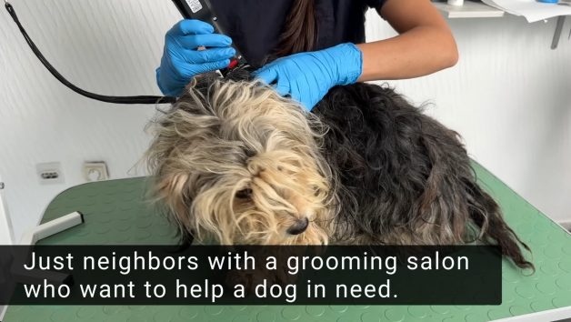 His body was thin—too thin—his ribs visible beneath patchy, inflamed skin. Large sections of his fur were gone, leaving behind raw, scaly patches that looked painful even from a distance. His ears drooped unnaturally, and his tail, once meant to wag freely, hung stiff and lifeless behind him.