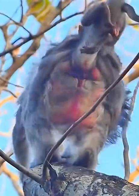 One day, she stops on a low branch and gently moves just far enough away that the baby must stretch to reach her. The baby hesitates. Its small body trembles slightly as it considers the distance. It lets out a soft call, as if asking, “Is it safe?”