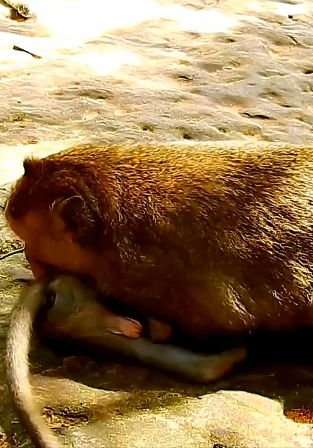 Life in the jungle was not always peaceful. While there were moments of play, laughter, and warm sunbathing on tree branches, there were also challenges—especially from the bigger monkeys who thought it was fun to pick on those weaker than them. Among them was a bully named Raku, a large and aggressive monkey with a loud voice and a mean streak that made even the older monkeys keep their distance.