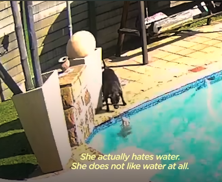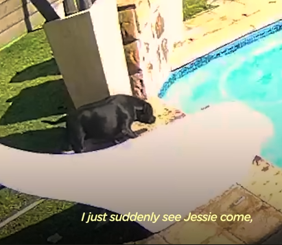 The soaked puppy. The dripping dog. The puddles of water leading back to the pool.