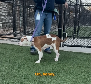 Her body told a story before anyone even got close enough to learn her name. Scars stretched across her face, her legs, her back—marks of a past no one could fully piece together. Each one hinted at pain, neglect, and survival. Her eyes, though, said even more. They weren’t aggressive or angry. They were cautious. Quiet. Unsure.