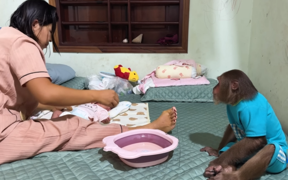 The bond between CUTIS and the baby monkey becomes even more evident during this time. Through shared attention and care, a connection is formed. The baby begins to associate this experience with safety and comfort, while CUTIS continues to provide guidance and reassurance.