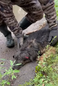 They looked down at him, really looked this time—not just at the wet fur or the trembling body, but at the condition he was in. The way he couldn’t lift himself. The way his breathing struggled.